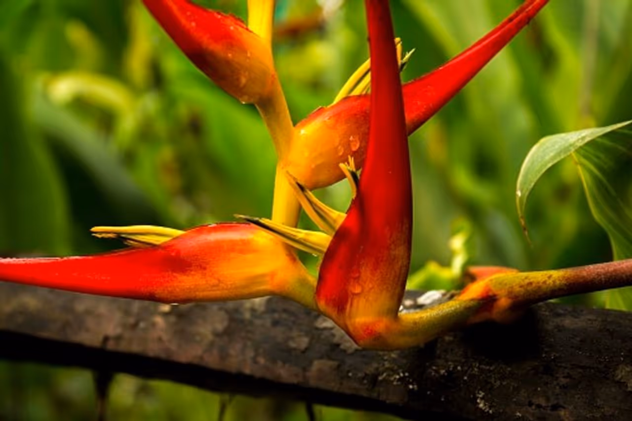 ചുവപ്പ്, ഓറഞ്ച്, മഞ്ഞ, പിങ്ക്, പച്ച എന്നീ നിറങ്ങളില് പൂക്കള് കാണപ്പെടുന്നു. പൂക്കളും സഹപത്രങ്ങളും പലയിനം പക്ഷികളുടെയും പ്രാണികളുടെയും പല്ലികളുടെയും വാസസ്ഥലവും ആഹാരസമ്പാദനത്തിന് ഉപകരിക്കുന്ന ഇടവുമാണ്. അതിരാവിലെ പൂക്കള് പറിച്ചെടുത്ത് വെള്ളത്തില് വെച്ചാല് ദീര്ഘകാലം നിലനില്ക്കും. ഏകദേശം 190 വ്യത്യസ്ത ഇനങ്ങളിലുള്ള ചെടികളുണ്ട്.