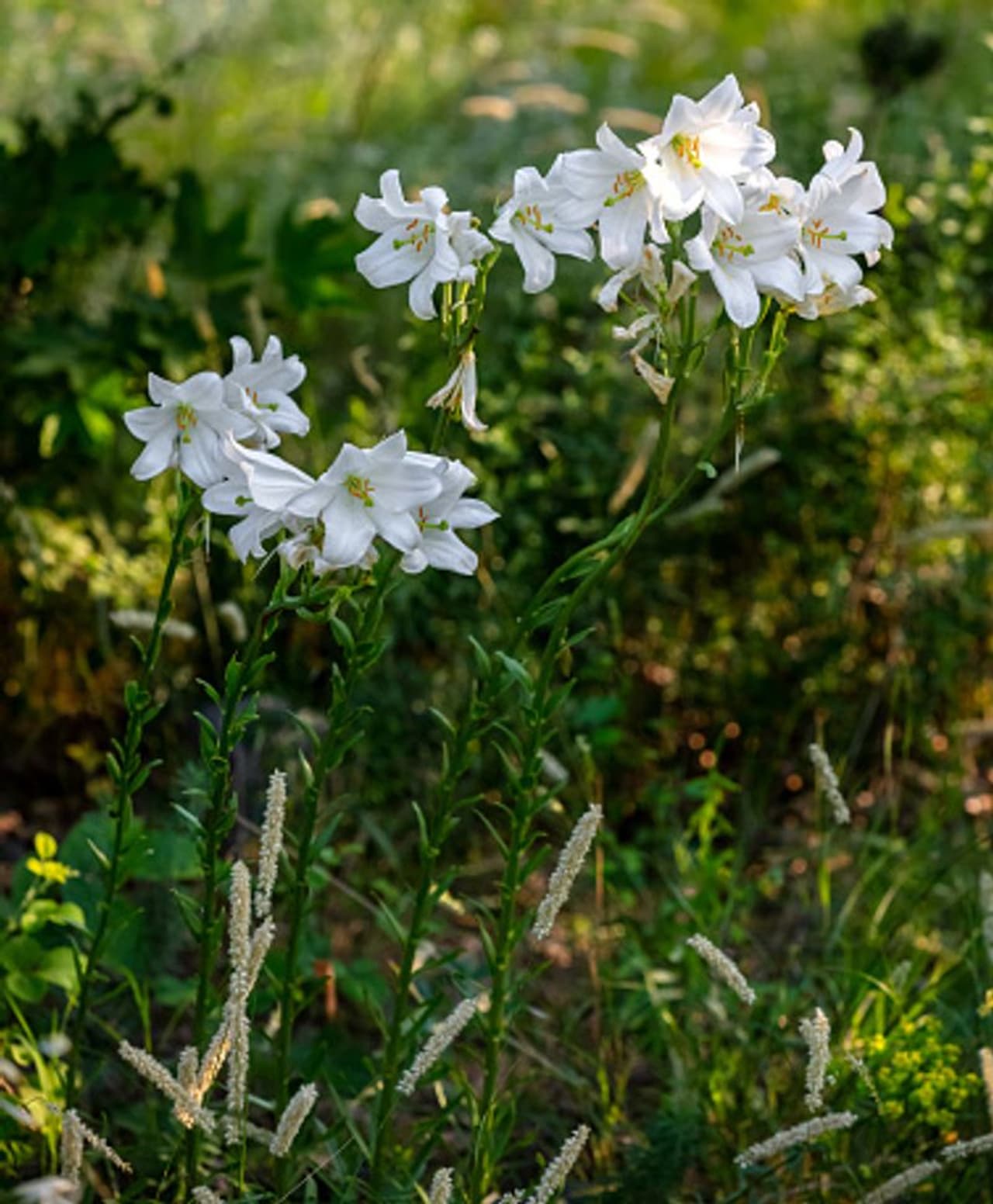 ലില്ലിയം കാന്ഡിഡം എന്നറിയപ്പെടുന്ന ഈ പൂച്ചെടിയില് ഏകദേശം ഏഴ് സെ.മീ വലുപ്പമുള്ള നല്ല തൂവെള്ളപ്പൂക്കളാണുണ്ടാകുന്നത്. നടുവിലായി കാണപ്പെടുന്ന നല്ല മഞ്ഞനിറത്തിലുള്ള പരാഗം വെളുത്ത ഇതളുകള്ക്കിടയില് അതിമനോഹരമായി ഇഴുകിച്ചേരുന്നു. സമൃദ്ധമായി പൂക്കള് വിടരുന്ന ചെടിയാണിത്. അതായത് ഒരു തണ്ടില് തന്നെ ഇരുപതോളം പൂക്കള് വിടരാനുള്ള സാധ്യതയുണ്ട്. കാഴ്ചയുടെ വസന്തം മാത്രമല്ല, നറുമണം കൊണ്ടും ഏറെ ആകര്ഷിക്കാന് കഴിവുള്ള പൂക്കളാണ്.