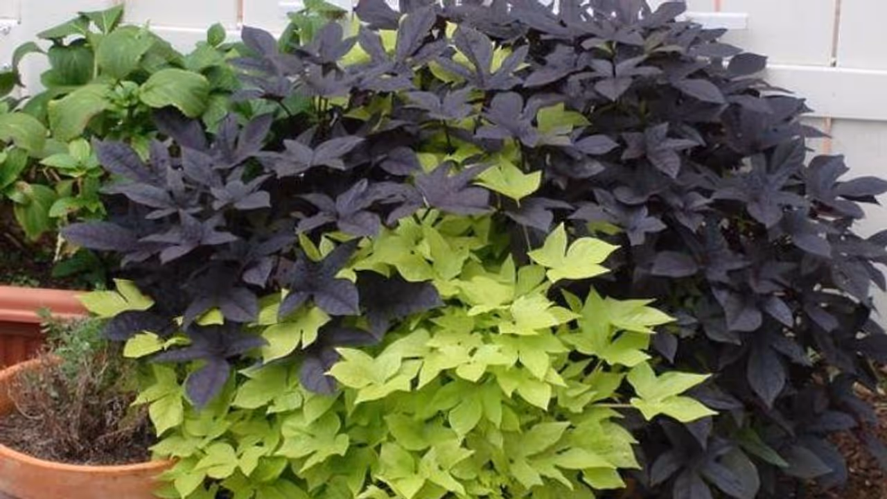 സ്വീറ്റ് പൊട്ടറ്റോ എന്നുതന്നെയാണ് കക്ഷിയുടെ പേര്. പക്ഷേ വേവിച്ച് ഭക്ഷിക്കാനൊന്നും പറ്റില്ലെന്ന് മാത്രം. ഇത് ശരിക്കും വള്ളികളായി പടര്ന്ന് വളരുന്ന അലങ്കാരച്ചെടിയാണ്. നല്ല ആകര്ഷകമായി നിറമുള്ള ഇലകളാണ് ഈ ചെടിയുടെ പ്രത്യേകത. ഫിലോഡെന്ഡ്രോണിനോടും സാമ്യമുള്ള ചെടി ഇന്ഡോര് പ്ലാന്റായും വളര്ത്താറുണ്ട്.