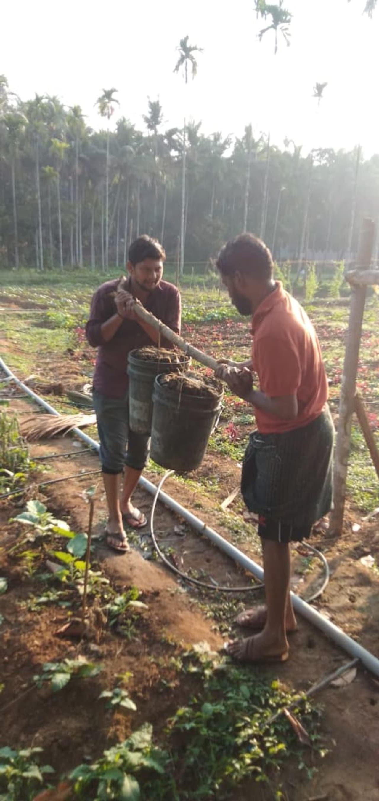 'തുള്ളിനനയെക്കുറിച്ച് പറഞ്ഞു തന്നത് കൃഷി ഓഫീസര് ഡാന മുനീര് ആണ്. ആവശ്യമായ സാമ്പത്തിക സഹായം കൃഷിഭവനില് നിന്ന് ലഭിക്കുമെന്ന് അറിഞ്ഞപ്പോഴാണ് തുള്ളിനനയിലേക്ക് മാറിയത്. സംഘത്തിലെ അംഗങ്ങള് തന്നെയാണ് പ്രധാനമായും മുന്നിട്ടിറങ്ങിയത്. രാവിലെയും വൈകുന്നേരവും ഇത്രയും വലിയ സ്ഥലത്ത് ബക്കറ്റില് വെള്ളം കൊണ്ടുപോയി നനയ്ക്കുക എന്നതാണ് ഞങ്ങളെ ഏറ്റവും പ്രയാസപ്പെടുത്തിയത്. ചുരുങ്ങിയത് അഞ്ചോ ആറോ ആളുകളുണ്ടെങ്കിലേ നനയ്ക്കാന് കഴിയൂ. എന്നാല് തുള്ളിനനയില് ഒരാള് മാത്രം മതി. മാനുഷിക അധ്വാനം നന്നായി കുറയ്ക്കാന് കഴിഞ്ഞു. കൃഷിഭവനില് നിന്ന് സബ്സിഡിയും സാങ്കേതിക ഉപദേശങ്ങളും തന്നിട്ടുണ്ട്.' സുധീഷ് കുമാര് പറയുന്നു.