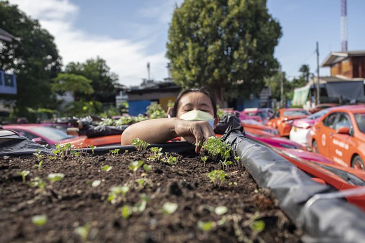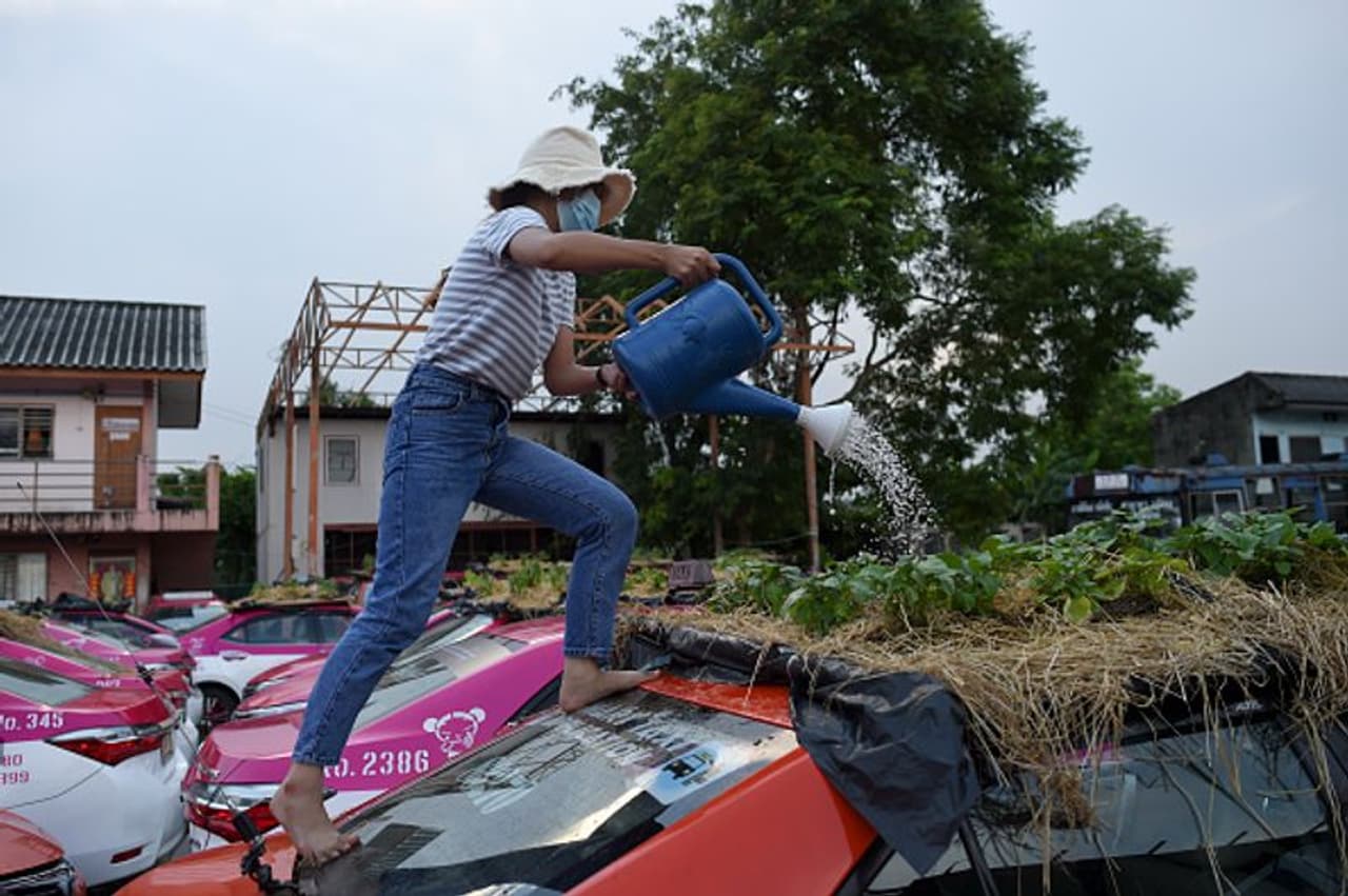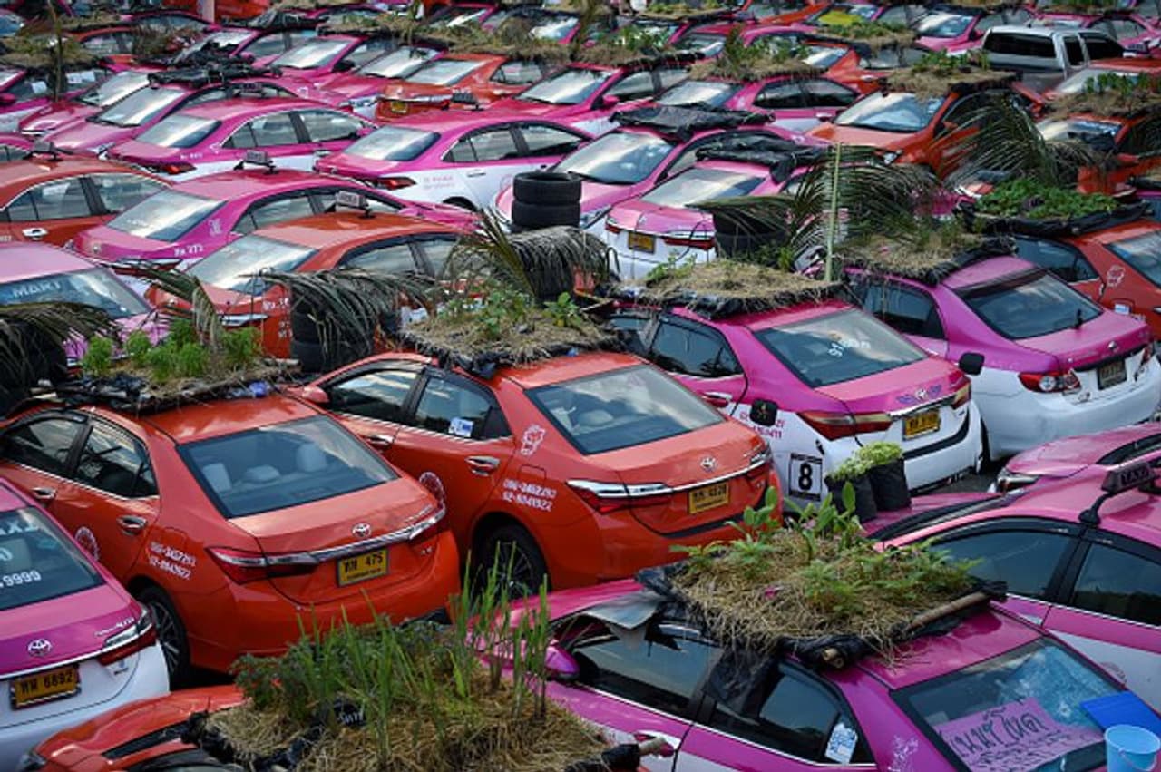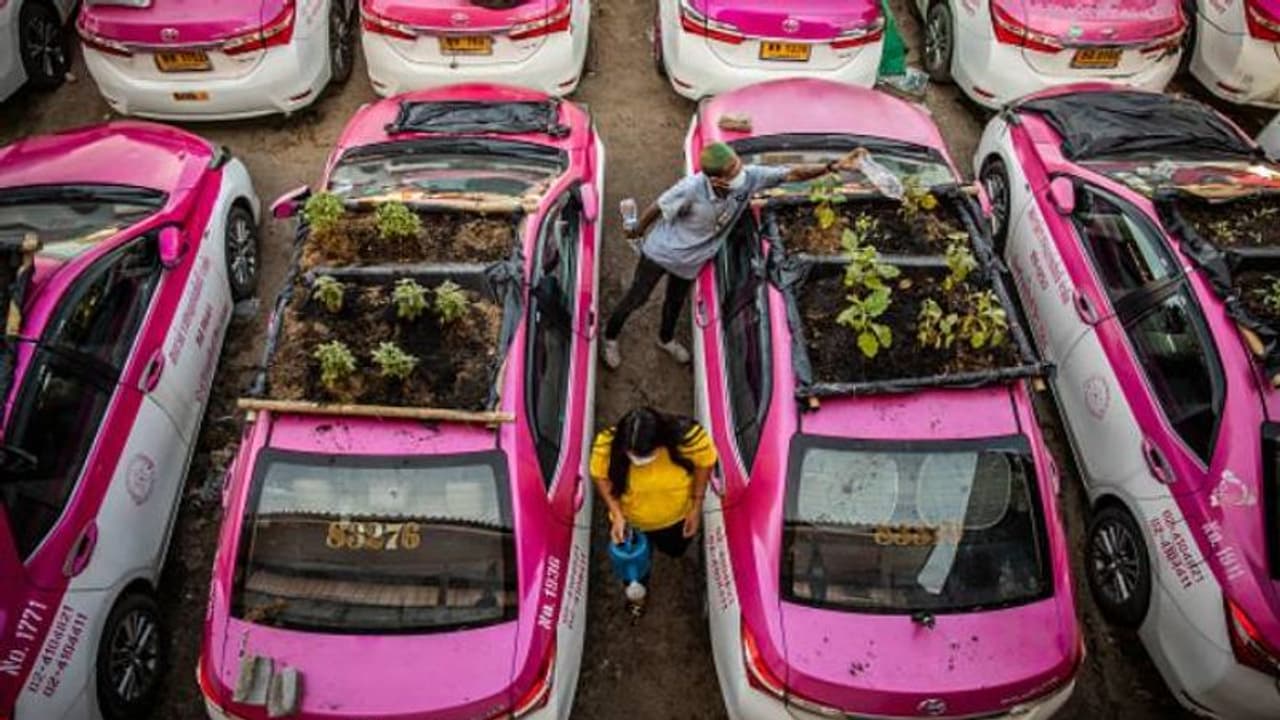 ലോകത്തിന്റെ നാനഭാഗങ്ങളെയും പിടിച്ചു കുലുക്കുകയാണ് കൊവിഡ് 19 എന്ന മഹാമാരി. പലർക്കും ജോലിയില്ലാതെയായി, വരുമാനമാർഗങ്ങൾ നിലച്ചു. ജീവിക്കാൻ എന്ത് ചെയ്യണമെന്നറിയാതെ അങ്കലാപ്പിലാണ് മനുഷ്യർ. ഇതിനിടെ തായ്ലന്ഡിലെ ബാങ്കോക്ക് നിന്നുള്ള കാഴ്ചയാണ് ആളുകളുടെ ശ്രദ്ധയെ ആകർഷിക്കുന്നത്. പലനിറത്തിലുള്ള ടാക്സികള്ക്ക് മീതെ പച്ചപ്പ് പിടിച്ച കാഴ്ച.