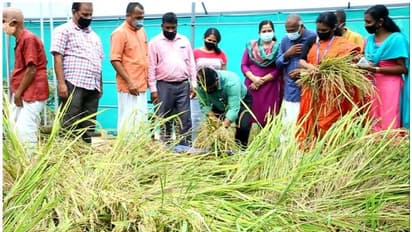 ചേര്ത്തല: വീടിന്റെ ടെറസില് നെല്കൃഷി ചെയ്ത് മികച്ച വിളവെടുപ്പ് നടത്തി പുതിയ മഠത്തില് കൃഷ്ണകുമാറും കുടുംബവും.സാധാരണ പച്ചക്കറികള് ടെറസില് കൃഷി ചെയ്യാറുണ്ട്. എന്നാല് നെല്കൃഷി ചെയ്ത് വിജയിപ്പിച്ചത് ആദ്യമെന്ന് വിളവെടുപ്പ് നടത്തിയ കൃഷി ഡപ്യൂട്ടി ഡയറക്ടര് ലീലാകൃഷ്ണനും പറയുന്നു.
