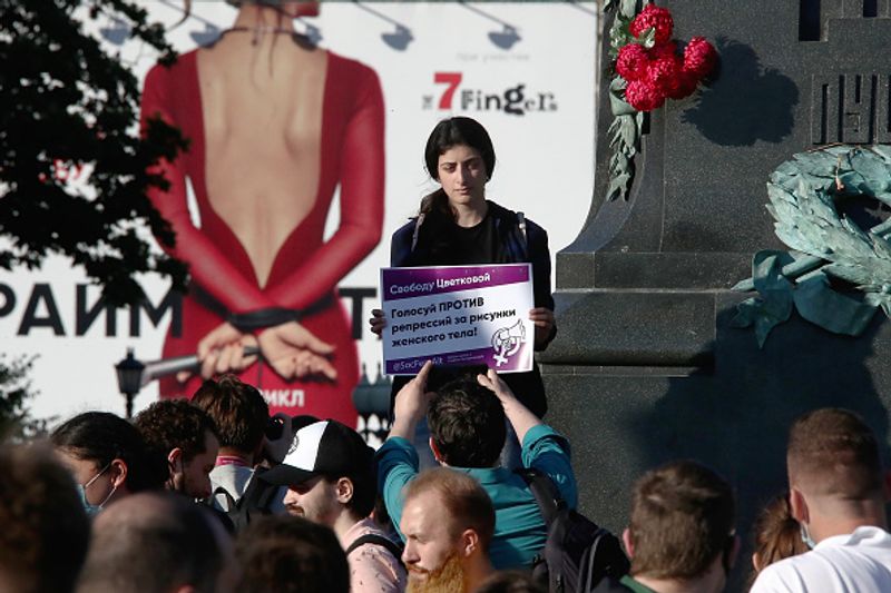 റഷ്യയിലെ ഒരു ഫെമിനിസ്റ്റ് ആക്ടിവിസ്റ്റ് അശ്ലീലചിത്രങ്ങള് പ്രചരിപ്പിച്ചുവെന്ന ആരോപണത്തില് വിചാരണ നേടുകയാണ്. സ്ത്രീശരീരവുമായി ബന്ധപ്പെട്ട ചിത്രം ഓണ്ലൈനില് പങ്കുവച്ചു എന്നതാണ് ഇവർക്കെതിരെ ചുമത്തിയിരിക്കുന്ന കുറ്റം. പരമ്പരാഗത കുടുംബമൂല്യങ്ങള് സംരക്ഷിക്കേണ്ടതുണ്ട് എന്ന ക്രെംലിനിലെ നിലപാടിന് എതിരാണ് എന്ന് പറഞ്ഞുകൊണ്ടാണ് ഈ ചിത്രകാരിക്കെതിരെ കേസ് എടുത്തിരിക്കുന്നത്.