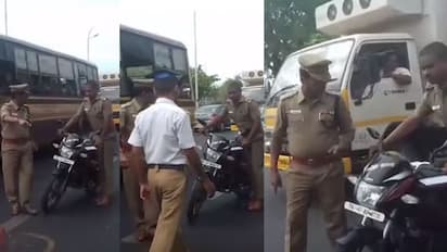 ചെന്നൈ: ഹെൽമെറ്റ് ധരിക്കാതെ വാഹനമോടിച്ച എസ്ഐയെ പരസ്യമായി ശകാരിച്ച് അസിസ്റ്റന്റ് കമ്മീഷണർ. വാഹന പരിശോധന നടത്തുന്നതിനിടെയാണ് ഹെൽമറ്റ് ധരിക്കാതെ ബൈക്കോടിച്ച് വരുകയായിരുന്ന എസ്ഐയെ കമ്മീഷണർ പിടികൂടുകയും ശകാരിക്കുകയും ചെയ്തത്. ചെന്നൈ കാമരാജ് ശാലൈയിലാണ് സംഭവം.