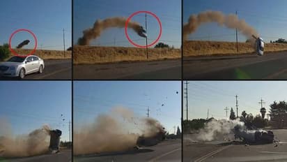 തിരക്കൊഴിഞ്ഞ റോഡിലൂടെ നിങ്ങള് വണ്ടിയോടിച്ചു പോകുന്നതിനിടെ പൊടുന്നനെ ഒരു വാഹനം അപ്രതീക്ഷിതമായി മുന്നിലേക്ക് പറന്നുവീണാലോ? ആരുമൊന്ന് നടുങ്ങും. അത്തരമൊരു വീഡിയോ ദൃശ്യങ്ങളാണ് കഴിഞ്ഞ കുറച്ചു ദിവസങ്ങളായി സോഷ്യല് മീഡിയയില് വൈറലായിക്കൊണ്ടിരിക്കുന്നത്.