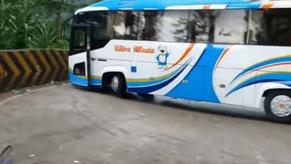 ഇന്തൊനേഷ്യയിലെ വെസ്റ്റ് സുമേത്രയിലെ പഡാംഗ് സിറ്റിയിലായിരുന്നു അപകടം നടന്നത്. വളവില് അമിതവേഗതയില് പാഞ്ഞ ടൂറിസ്റ്റ് ബസാണ് അപടകത്തില്പെട്ടത്. ബസിനകത്ത് ഇറങ്ങാന് നിന്ന യാത്രക്കാരനെയടക്കം പറപറപ്പിച്ച ബസ് ഡിവൈഡറിലും തട്ടി റോഡ് ക്രോസ് ചെയ്ത് സൈഡില് ഇടിച്ചാണ് നിന്നത്.