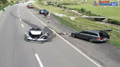 സ്വിറ്റ്സർലൻഡിലായിരുന്നു ഈ അപകടം. സ്വിസ് ആൽപ്സിലെ മനോഹരമായ ഗോത്ഹാർഡ് ചുരത്തിലൂടെ പതിയെ സഞ്ചരിച്ചു കൊണ്ടിരുന്ന മോട്ടോർ ഹോമിനെ മറികടക്കാൻ മറ്റു മൂന്നു വാഹനങ്ങൾ ഒരുമിച്ച് ശ്രമിച്ചതാണ് അപകടത്തിന് കാരണം. പർവതനിരയിലെ ഗതാഗതം മന്ദഗതിയിലാക്കിയ മോട്ടോർ ഹോമിനെ മറികടക്കാൻ ബുഗാട്ടിയും പോർഷെയും ശ്രമിച്ചു. ഇതോടെ ബുഗാട്ടി ബെൻസിനേയും പോർഷെ മോട്ടർഹോമിനേയും ഇടിച്ചു. അങ്ങനെ ഒരേ സമയം വാഹനത്തെ മറികടക്കാൻ ശ്രമിക്കുന്നതിനിടെ വാഹനങ്ങള് പരസ്പരം കൂട്ടിയിടിച്ചു തകരുകയായിരുന്നു.