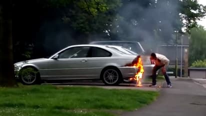 ഇതിനിടെ സഭവസ്ഥലത്തെത്തിയ രണ്ടു പേരിലൊരാള് ഉടമയെ കാറിന് സമീപത്തു നിന്നും പിടിച്ചു മാറ്റുന്നതും വീഡിയോയില് വ്യക്തമാണ്. കാര് പൊട്ടിത്തെറിക്കുന്നത് ഉള്പ്പടെയുള്ളവ ശ്രദ്ധയില്പ്പെടുത്തിയിട്ടും മാറാന് കൂട്ടാക്കാതിരുന്ന ഉടമയെ അല്പം ബലം പ്രയോഗിച്ചാണ് ഇയാള് പിടിച്ചുമാറ്റുന്നത്. ഇതിനിടെ കാറില് നിന്നും പൊട്ടിത്തെറി ശബ്ദവും ഉയരുന്നുണ്ട്.