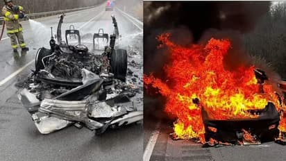 ചൊവ്വാഴ്ച രാവിലെ 11 മണിയോടെയായിരുന്നു ഇത്. സാധാരണ നിലയില് കാറിന് തീ പിടിച്ചാല് 500 ഗാലണ് വെള്ളം ഉപയോഗിക്കുമ്പോഴേയ്ക്കും അഗ്നി ബാധ നിയന്ത്രണ വിധേയമാകാറുണ്ടെന്നാണ് അഗ്നിശമനസേനാംഗം അന്തര് ദേശീയ മാധ്യമങ്ങളോട് പ്രതികരിച്ചത്. അഗ്നിക്കിരയായി കിടക്കുന്ന വാഹനം കണ്ടാല് അത് ഏത് വാഹനമെന്ന് തിരിച്ചറിയാന് പോലും സാധിക്കാത്ത അവസ്ഥയിലായിരുന്നുവെന്നും അഗ്നി ശമന സേനാംഗം പറയുന്നു. കാറിലെ ലിഥിയം അയണ് ബാറ്ററിയിലുണ്ടായ തകരാറാണ് അഗ്നി ബാധയ്ക്ക് കാരണമായതെന്നാണ് പ്രാഥമിക നിഗമനം.