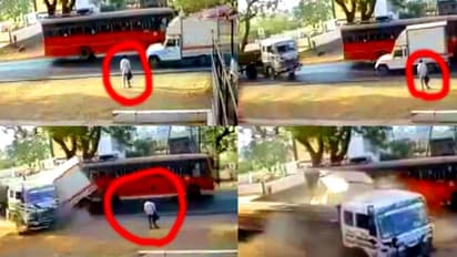 റോഡിൽ നിർത്തി ആളെക്കയറ്റിയ ബസിനെയും അമിത വേഗത്തിലായിരുന്ന ലോറിയെയും വീഡിയോയില് വ്യക്തമായി കാണാം. തൊട്ടടുത്ത പെട്രോൾ പമ്പിലെ സിസിടിവി ക്യാമറയിലാണ് ദൃശ്യങ്ങൾ പതിഞ്ഞത്.