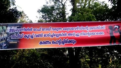 വാഗമണ് - ഉളുപ്പുണിയിലാണ് നാട്ടുകാര് ഈ മുന്നറിയിപ്പുമായി ബാനര് സ്ഥാപിച്ചിരിക്കുന്നത്. ഓഫ് റോഡ് ഡ്രൈവിനായി എത്തുന്നവര്ക്കാണ് ഈ മുന്നറിയിപ്പ്. ഈ റൂട്ടിലൂടെയുള്ള ഓഫ് റോഡ് റൈഡിന് എത്തുന്ന വാഹനങ്ങളുണ്ടാക്കുന്ന അപകടങ്ങള് തുടര്ക്കഥയായതോടെയാണ് നാട്ടുകാര് തന്നെ ഇതിനെതിരെ നേരിട്ട് രംഗത്തിറങ്ങിയത്.