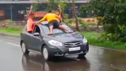 മഴയത്ത്, ഓടിക്കൊണ്ടിരിക്കുന്ന കാറിനു മുകളിലും ഇരുവശത്തെ വിന്ഡോകളിലും തൂങ്ങി പൊതുനിരത്തിലൂടെ പാഞ്ഞ യുവാക്കളെ തേടി പൊലീസ്. സോഷ്യല് മീഡിയയില് കഴിഞ്ഞ ദിവസങ്ങളില് വൈറലായ ഈ വീഡിയോ മഹാരാഷ്ട്രയില് നിന്നുള്ളതാണെന്ന് കാര് ടോഖ് റിപ്പോര്ട്ട് ചെയ്യുന്നു.