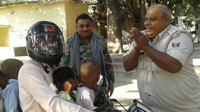 കഴിഞ്ഞ ദിവസം അത്തരമൊരു സംഭവം നടന്നു. ആ ബൈക്കുകാരനോടുള്ള പൊലീസിന്റെ പെരുമാറ്റമിപ്പോൾ സമൂഹ മാധ്യമങ്ങളിൽ വൈറലാകുകയാണ്. അങ്ങ് ബിഹാറിലെ വൈശാലി ജില്ലയിലാണ് സംഭവം. നിറയെ ആളുകളുമായി വരുന്ന ബൈക്ക് കണ്ട ലാൽഗഞ്ച് പൊലീസ് സ്റ്റേഷൻ ഇൻചാർജായ അശോക് കുമാറും സംഘവും ഞെട്ടി. ഭർത്താവും ഭാര്യയും അഞ്ച് കുട്ടികളും അടക്കം ഏഴു പേരായിരുന്നു ബൈക്കില്. രണ്ടു കുട്ടികളെ മുന്നിലെ പെട്രോൾ ടാങ്കിലും മൂന്നു കുട്ടികളേയും ഭാര്യയേയും പിന്നിലും ഇരുത്തിയാണ് ഇയാൾ ബൈക്ക് ഓടിച്ചത്. പൊലീസിനെ കണ്ടപ്പോള് ഇയാളുടെ ഭാര്യ ഇറങ്ങി നടന്നു.