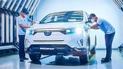 16 ഇഞ്ച് അലോയി വീലുകളാണ് ഇന്നോവ ഇവിക്ക് ലഭിക്കുന്നത്. ഡോർ ഹാൻഡിലുകൾ, ബോഡി മോൾഡിംഗുകൾ, ക്രോം ട്രിം ചെയ്ത ബ്ലാക്ക്-ഔട്ട് റൂഫ് എന്നിവയുണ്ട്. പിന്നിൽ ഒരു ലൈറ്റ് സ്ട്രിപ്പ് ഉപയോഗിച്ച് ബന്ധിപ്പിച്ചിരിക്കുന്ന LED റിയർ ടെയിൽ ലൈറ്റുകളും ഇതിലുണ്ട്.