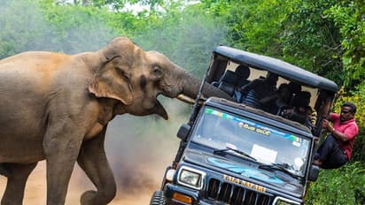 പാര്ക്കിനുള്ളില് അധികൃതരുടെ വാഹനത്തില് സഫാരി റൈഡ് നടത്തവെയാണ് സംഭവം. ദൂരെ നിന്നും കാട്ടാനയെ കണ്ടപ്പോള് തന്നെ വാഹനം മുന്നോട്ടെടുക്കാന് ഡ്രൈവര് ശ്രമിച്ചെങ്കിലും സഞ്ചാരികള് തടഞ്ഞു. കാട്ടാനയുടെ പശ്ചാത്തലത്തില് സെല്ഫിയെടുക്കാനായിരുന്നു ഇവരുടെ പരിപാടി.
