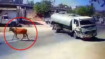 റോഡിന് കുറുകേ നടന്ന പശുക്കുട്ടിയെ രക്ഷിക്കാന് നടുറോഡില് സഡന് ബ്രേക്കിട്ട ടാങ്കര് ലോറി സിനിമാസ്റ്റൈലില് വട്ടംകറങ്ങി. സംഭവത്തിന്റെ വീഡിയോ ദൃശ്യങ്ങള് സോഷ്യല് മീഡിയയില് വൈറലാകുകയാണ്.