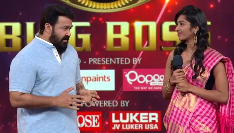 എന്നാല് രേഷ്മയ്ക്ക് ഉണ്ടായിരിക്കാനിടയുള്ള ഒരു തെറ്റിദ്ധാരണയെ തിരുത്തിക്കൊണ്ട് മോഹന്ലാല് പ്രതികരിച്ചു, 'ഒരു കാര്യം ഞാന് പറഞ്ഞോട്ടെ, കണ്ണില് മുളക് തേച്ചതുകൊണ്ടല്ല രേഷ്മ പുറത്ത് പോകുന്നത്. ഇത് വലിയ ഓഡിറ്റ് ഉള്ള കാര്യമാണ്. സുതാര്യമായ വോട്ടിംഗ് സിസ്റ്റം ഉണ്ട്. രേഷ്മയ്ക്കായിരുന്നു ഈ പ്രാവശ്യം വോട്ടുകള് കുറവ്. ആ സംഭവം ഉണ്ടായാലും ഇല്ലെങ്കിലും രേഷ്മ തന്നെ ആയിരുന്നു പുറത്ത് പോകേണ്ടിയിരുന്നത്. ആ ഒരു തെറ്റായ ധാരണ വച്ചുകൊണ്ട് രേഷ്മ പോകുന്നത് എന്നെ സംബന്ധിച്ചും ബിഗ് ബോസ് ഫാമിലിയെ സംബന്ധിച്ചും ബിഗ് ബോസ് ഷോയെ സംബന്ധിച്ചും തെറ്റായ ഒരു കാര്യമായതുകൊണ്ട് പറഞ്ഞു എന്നേയുള്ളൂ. എല്ലാ ആശംസകളും. കാണാം, ഭാവുകങ്ങള്', മോഹന്ലാല് പറഞ്ഞുനിര്ത്തി. കൊവിഡ്-19 മുന്കരുതല് എന്ന നിലയില് കാണികള് ഒഴിഞ്ഞ ബിഗ് ബോസ് സദസ്സിലെ കസേരകള്ക്ക് മധ്യത്തിലൂടെ രേഷ്മ പുറത്തേക്ക്..
