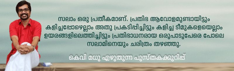 സലാം ഒരു പ്രതീകമാണ്. പ്രതിഭ ആവോളമുണ്ടായിട്ടും കളിച്ചപ്പോഴെല്ലാം അതു പ്രകടിപ്പിച്ചിട്ടും കളിച്ച ടീമുകളെയെല്ലാം ഉയരങ്ങളിലെത്തിച്ചിട്ടും പ്രതിഭാധനരായ ഒരുപാടുപേരെ പോലെ സലാമിനെയും ചരിത്രം തഴഞ്ഞു. ഫുട്ബോളിന്റെ മക്കയായ കൊല്ക്കത്തയിലെ മുഹമ്മദ് സലീമിന്റെ അനുഭവം പറഞ്ഞുകൊണ്ട് കെടി അബ്ദുറബ്ബ് ആമുഖലേഖനത്തില് ഇക്കാര്യം വിശദീകരിക്കുന്നുണ്ട്.