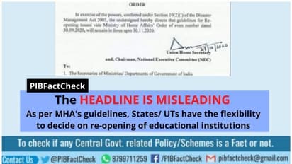 ദില്ലി: രാജ്യത്തെ സ്കൂളുകൾ നവംബർ 30 വരെ അടഞ്ഞ് കിടക്കുമെന്നുള്ള വാർത്തകൾ തെറ്റിദ്ധരിപ്പിക്കുന്നതാണെന്ന് വ്യക്തമാക്കി പ്രസ് ഇൻഫോർമേഷൻ ബ്യൂറോ. കേന്ദ്ര ആഭ്യന്തര മന്ത്രാലയത്തിന്റേതെന്ന പേരിൽ സമൂഹമാധ്യമങ്ങളിൽ ഇത്തരം വാർത്തകൾ പ്രചരിക്കുന്ന സാഹചര്യത്തിലാണ് ഈ വിശദീകരണം. ഈ ഉത്തരവിന്റെ തലക്കെട്ട് തന്നെ തെറ്റിദ്ധരിപ്പിക്കുന്നതാണെന്ന് പിഐബി ട്വീറ്റിൽ പറയുന്നു.