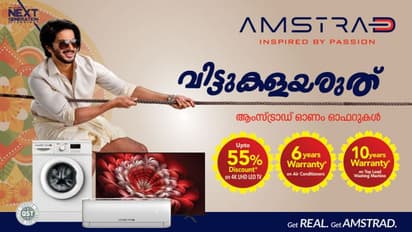 ഈ ഓണാഘോഷം അവിസ്മരണീയമാക്കുവാന് ആംസ്ട്രാഡ് ഒരുക്കിയിരിക്കുന്ന അതിശയിപ്പിക്കുന്ന ഓഫറുകള്ക്കൊപ്പം നിങ്ങളാഗ്രഹിച്ച എല്.ഇ.ഡി ടിവിയും, എയര് കണ്ടീഷണറും, വാഷിംഗ് മെഷീനും സ്വന്തമാക്കാം. കേരളത്തിലെ എല്ലാ പ്രമുഖ ഡീലര് ഷോറൂമുകളിലും ആംസ്ട്രാഡ് ഇലക്ട്രോണിക്സ് - ഹോം അപ്ലയന്സസ് ലഭ്യമാണ്.