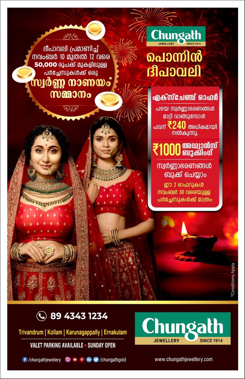 കൂടുതൽ ഓഫറുകള്ക്ക് സന്ദര്ശിക്കാം - https://www.chungathjewellery.com/offers അല്ലെങ്കിൽ വിളിക്കൂ - 8943431234