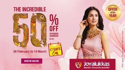 അവിശ്വസനീയമായ ഈ ഓഫർ 17 ദിവസമായി പരിമിതപ്പെടുത്തിയിരിക്കുന്നു. 2021 ഫെബ്രുവരി ആരംഭിച്ച ഓഫർ മാർച്ച് 14 ന് അവസാനിക്കുന്നതാണ്. ഇന്ത്യയിലെ എല്ലാ ജോയ്ആലുക്കാസ് ഷോറൂമുകളിലും ഈ ഓഫർ ലഭ്യമാണ്. ഓഫറിന് പുറമെ, ജോയ്ആലുക്കാസിൽ നിന്നുമുള്ള പർച്ചേയ്സുകൾക്ക് ഒരു വർഷത്തെ സൗജന്യ ഇൻഷുറൻസും ആജീവനാന്ത ഫ്രീ മെയിന്റനൻസും ഉറപ്പ് നൽകുന്നു. കൂടാതെ, ആകർഷകങ്ങളായ എക്സ്ചേഞ്ച് ഓഫറുകളും പ്രയോജനപ്പെടുത്താവുന്നതാണ്.