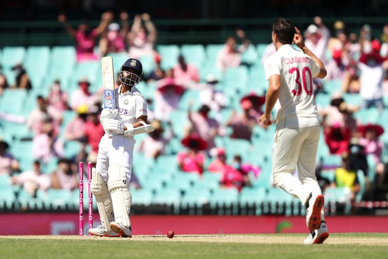 പാറ്റ് കമ്മിന്സിന്റെ മാരക ബൗളിങ്ങാണ് ഇന്ത്യ ബാറ്റിങ് നിരയുടെ നട്ടെല്ലൊടിച്ചത്. ശുഭ്മാന് ഗില് (50), അജിന്ക്യ രഹാനെ (22), ചേതേശ്വര് പൂജാര (50), മുഹമ്മദ് സിറാജ് (4) എന്നിവരുടെ വിക്കറ്റുകളാണ് കമ്മിന്സ് വീഴ്ത്തിയത്. കൂടാതെ ആര് അശ്വിനെ റണ്ണൗട്ടാക്കുന്നതിനും താരം പങ്കാളിയായി. രഹാനെയുടെ പ്രതിരോധ പൊളിച്ചാണ് കമ്മിന്സ് മൂന്നാം ദിനം ആരംഭിച്ചത്. ലോക ഒന്നാം നമ്പര് ബൗളറുടെ പന്തില് രഹാനെ ബൗള്ഡാവുകയായിരുന്നു. ബാറ്റ്സ്മാന്റെ പ്രതീക്ഷ തെറ്റിച്ച് അധികം ബൗണ്സ് ചെയ്യാത്ത ഒരു പന്ത് രഹാനെയുടെ ബാറ്റില് തട്ടി വിക്കറ്റിലേക്ക് വീണു. ഒരു ഫോറും ഒരു സിക്സും ഉള്പ്പെടെയാണ് രഹാനെ 22 റണ്സ് നേടിയത്. പൂജാരയ്ക്കൊപ്പം 32 റണ്സ് കൂട്ടിച്ചേര്ത്തു. പരമ്പരയില് നാലാം തവണയാണ് കമ്മിന്സ് പൂജാരയെ മടക്കുന്നത്. വാലറ്റക്കാരന് സിറാജിനെ വിക്കറ്റ് കീപ്പര് ടിം പെയ്നിന്റെ കൈകകളിലെത്തിച്ച് കമ്മിന്സ് നാല് വിക്കറ്റ് പൂര്ത്തിയാക്കി. ഇന്നലെ ശുഭ്മാന് ഗില്ലിനേയും കമ്മിന് മടക്കിയിരുന്നു.