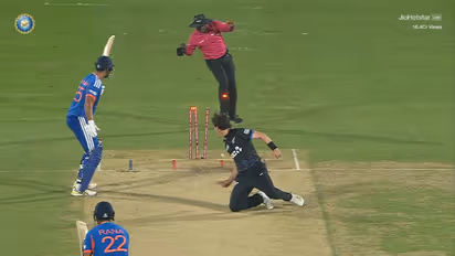 റിങ്കു സിംഗും ശിവം ദുബെയും പ്രതീക്ഷ നല്കിയെങ്കിലും റിങ്കുവിനെ മടക്കി സാക്രി ഫോക്സ് ഇന്ത്യയുടെ അവസാന പ്രതീക്ഷയും തകര്ത്തു. എന്നാല് ഹര്ഷിത് റാണയെ ഒരറ്റത്ത് നിര്ത്തി ശിവം ദുബെ സിക്സര് മഴ പെയ്യിച്ചതോടെ ഇന്ത്യക്ക് പ്രതീക്ഷയായി. ഇഷ് സോധിയുടെ ഓവറില് നാല് സിക്സ് അടക്കം 29 റണ്സടിച്ച ശിവം ദുബെ 15 പന്തില് അര്ധസെഞ്ചുറിയിലെത്തി. എന്നാല് ഹര്ഷിത് റാണയുടെ സ്ട്രൈറ്റ് ഡ്രൈവ് മാറ്റ് ഹെന്റിയുടെ കൈയില് തട്ടി നോണ് സ്ട്രൈക്കിംഗ് എന്ഡിലെ സ്റ്റംപില് തട്ടി ദുബെ നിര്ഭാഗ്യകരമായി റണ്ണൗട്ടായതോടെ ഇന്ത്യയുടെ പോരാട്ടം തീര്ന്നു. ശിവം ദുബെ പുറത്താകുമ്പോള് 15 ഓവറില് 145 റണ്സിലെത്തിയിരുന്ന ഇന്ത്യ 20 റണ്സ് കൂടി കൂട്ടിച്ചേര്ത്ത് ഓള് ഔട്ടായി.