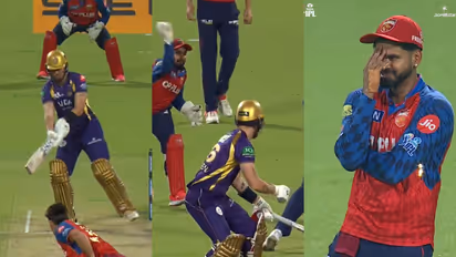 മത്സരത്തില് അര്ഷ്ദീപ് സിംഗ് എറിഞ്ഞ ആദ്യ ഓവറില് 12 റണ്സടിച്ച് കൊല്ക്കത്ത നല്ല തുടക്കമിട്ട. സേവിയര് ബാർട്ലെറ്റ് എറിഞ്ഞ രണ്ടാം ഓവറായിരുന്നു സംഭവബഹുലമായത്. ഓഫ് സ്റ്റംപിന് പുറത്തേക്ക് സ്വിംഗ് ചെയ്ത ആദ്യ പന്തില് വമ്പനടിക്ക് ശ്രമിച്ച ഫിന് അലന് പന്ത് എഡ്ജ് ചെയ്യാതെ രക്ഷപ്പെട്ടു. രണ്ടാം പന്തും ഓഫ് സ്റ്റംപിന് പുറത്തേക്ക് സ്വിംഗ് ചെയ്യുന്നതായിരുന്നു. ഈ പന്തില് സ്കൂപ്പ് ഷോട്ടിന് ശ്രമിച്ച അലന് പിഴച്ചു. പന്തിന്റെ ദിശയിലേക്ക് നീങ്ങി സ്കൂപ്പ് ചെയ്യാൻ ശ്രമിച്ച അലന് പന്ത് കണക്ട് ചെയ്യാനായില്ല. പന്ത് അലന്റെ ശരീരത്തിൽ തട്ടി വിക്കറ്റ് കീപ്പറുടെ അടുത്തേക്ക് തെറിച്ചു. ഈ സമയം സിംഗിളിനായി നോൺ-സ്ട്രൈക്കർ അജിങ്ക്യ രഹാനെ ഓട്ടം തുടങ്ങിയതോടെ അലനും ആശയക്കുഴപ്പത്തിലായി.