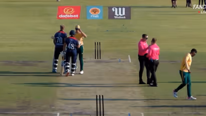 21 റണ്സെടുത്ത ക്യാപ്റ്റന് ജെര്ഹാര്ഡ് ഇറാസ്മസും നമീബിയക്ക് വേണ്ടി ഭേദപ്പെട്ട പ്രകടനം പുറത്തെടുത്തു. ദക്ഷിണാഫ്രിക്കയ്ക്ക വേണ്ടി നന്ദ്രേ ബര്ഗര്, ആന്ഡിലെ സിംലെയ്ന് എന്നിവര് രണ്ട് വിക്കറ്റ് വീതം വീഴ്ത്തി. നേരത്തെ, ദക്ഷിണാഫ്രിക്കന് നിരയില് ആര്ക്കും വലിയ സ്കോര് നേടാന് സാധിച്ചില്ല. വിരമിക്കല് തീരുമാനം പിന്വലിച്ച് ക്രിക്കറ്റിലേക്ക് മടങ്ങിയെത്തിയ ക്വിന്റണ് ഡി കോക്ക് (1) നിരാശപ്പെടുത്തി. ആദ്യ ഓവറില് തന്നെ ദക്ഷിണാഫ്രിക്കയ്ക്ക് ഡി കോക്കിനെ നഷ്ടമായി. ജെര്ഹാര്ഡ് ഇറാസ്മസിനായിരുന്നു വിക്കറ്റ്. തുടര്ന്നെത്തിയ റീസ ഹെന്ഡ്രിക്സിനും (7) തിളങ്ങാന് കഴിഞ്ഞില്ല. ഇതോടെ രണ്ടിന് 25 എന്ന നിലയിലായി ദക്ഷിണാഫ്രിക്ക.