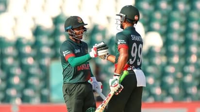 അത്ര മികച്ചതായിരുന്നില്ല ബംഗ്ലാദേശിന്റെ തുടക്കം. സ്കോര്ബോര്ഡില് 63 റണ്സ് ചേര്ക്കുന്നതിനിടെ അവര്ക്ക് രണ്ട് വിക്കറ്റുകള് നഷ്ടമായി. മുഹമ്മദ് നെയിം (28), തൗഹിദ് ഹൃദോയ് (0) എന്നിവരാണ് മടങ്ങിയത്. എന്നാല് നാലാം വിക്കറ്റില് ബംഗ്ലാദേശിനെ കൂറ്റന് സ്കോറിലേക്ക് നയിച്ച ഗംഭീര കൂട്ടുകെട്ട് പിറന്നു. മെഹിദി - ഷാന്റോ സഖ്യം 215 റണ്സാണ് കൂട്ടിചേര്ത്തത്. 45-ാം ഓവറിലാണ് കൂട്ടുകെട്ട് പൊളിയുന്നത്.