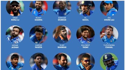 Virat Kohli (Capt), Rohit Sharma (vc), Shikhar Dhawan, KL Rahul, Vijay Shankar, MSD (wk), Kedar Jadhav, Dinesh Karthik, Yuzvendra Chahal, Kuldeep Yadav, Bhuvneshwar Kumar, Jasprit Bumrah, Hardik Pandya, Ravindra Jadeja, Mohd Shami