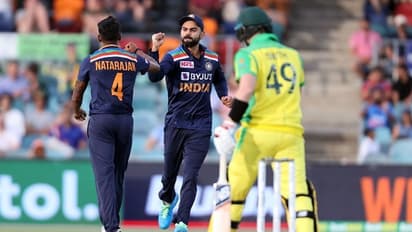 സ്ഥാനക്കയറ്റം നേടിയെത്തിയ ഹെന്റ്വികെസിനും തിളങ്ങാനായില്ല. താക്കൂറിനെതിരെ ഒരു പുള് ഷോട്ട് കളിക്കാന് ശ്രമിക്കുന്നതിനെ ശിഖര് ധവാന് ക്യാച്ച് നല്കുകയായിരുന്നു. അരങ്ങേറ്റക്കാരന് കാമറൂണ് ഗ്രീന് അല്പനേരം പിടിച്ചുനിന്നെങ്കിലും കുല്ദീപ് യാദവിന് വിക്കറ്ര് നല്കി പവലിയനില് തിരിച്ചെത്തി. ഇതിനിടെ ഫിഞ്ചിനെ ജഡേജയും മടക്കി. 82 പന്തുകള് നേരിട്ടാണ് താരം 75 റണ്സ് നേടിയത്. ഏഴ് ഫോറും മൂന്ന് സിക്സും അടങ്ങുന്നതായിരുന്നു ഫിഞ്ചിന്റെ ഇന്നിങ്സ്. താക്കൂറിന് പുറമെ നടരാജന്, കുല്ദീപ്, ജഡേജ എന്നിവര് ഓരോ വിക്കറ്റ് വീഴ്ത്തി.