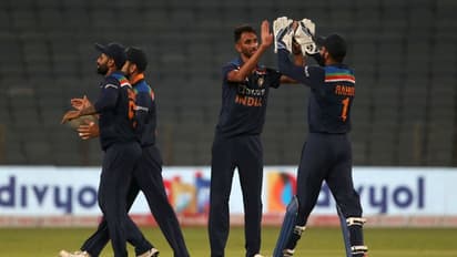 മോയിന് അലിയും സാം ബില്ലിംഗ്സും ചെറുത്തു നില്ക്കാന് ശ്രമിച്ചെങ്കിലും തന്റെ മൂന്നാം സ്പെല്ലില് ബില്ലിംഗ്സിനെ(18) മടക്കി പ്രസിദ്ധ് അരങ്ങേറ്റം ഗംഭീരമാക്കി. തൊട്ടു പിന്നാലെ മോയിന് അലിയെ(30) ഭുവനേശ്വര് കുമാറും സാം കറനെ(12) ക്രുനാല് പാണ്ഡ്യയും മടക്കിയതോടെ ഇംഗ്ലണ്ടിന്റെ പോരാട്ടം തീര്ന്നു. ഇന്ത്യക്കായി പ്രസിദ്ധ് കൃഷ്ണ നാലും ഷര്ദ്ദുല് ഠാക്കൂര് മൂന്നും വിക്കറ്റ് വീഴ്ത്തിയപ്പോള് ഭുവനേശ്വര് കുമാര് രണ്ട് വിക്കറ്റെടുത്തു.