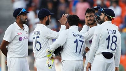 മുന്നിര തകര്ന്നിട്ടും പിടിച്ചു നിന്ന പോപ്പ്-ലോറന്സ് സഖ്യം ഇംഗ്ലണ്ടിന് പ്രതീക്ഷ നല്കിയെങ്കിലും ഈ കൂട്ടുകെട്ട് പൊളിച്ച് അശ്വിന് വീണ്ടും ആഞ്ഞടിച്ചു. പോപ്പിനെ ഷോര്ട്ട് ലെഗില് ശുഭ്മാന് ഗില്ലിന്റെ കൈകളിലെത്തിച്ച അശ്വിന് പിന്നാലെ ക്രീസിലെത്തിയ ബെന് ഫോക്സിനും വിധിയെഴുതി. 46 റണ്സെടുത്ത് ചെറുത്തുനിന്ന ഡാനിയേല് ലോറന്സിനെ അക്സറും മടക്കിയതോടെ ഇംഗ്ലണ്ടിന്റെ പ്രതിരോധം അവസാനിച്ചു. അവസാനം ജാക്ക് ലീച്ചിനെ വിക്കറ്റിന് മുന്നില് കുടുക്കി അശ്വിന് പട്ടിക പൂര്ത്തിയാക്കി. ഇതോടെ ഇംഗ്ലണ്ട് ഇന്നിങ്സ് അവസാനിച്ചു. ജയിംസ് ആന്ഡേഴ്സണ് (10) പുറത്താവാതെ നിന്നു.