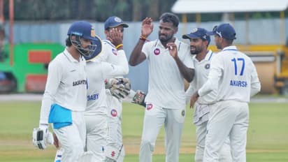 ഏഴിന് 246 റണ്സെന്ന നിലയിലാണ് കേരളം രണ്ടാം ദിനം ബാറ്റിംഗിനെത്തിയിരുന്നത്. ആദ്യ ദിവസത്തെ സ്കോറിനോട് റണ്സൊന്നും ചേര്ക്കാനാവാതെ ശ്രീഹരി എസ് നായര് (7) ആദ്യം മടങ്ങി. പിന്നാലെ സെഞ്ചുറിക്കരികെ അപാരാജിതും പുറത്തായി. എട്ട് ബൗണ്ടറികള് ഉള്പ്പെടുന്നതാണ് ഇന്നിംഗ്സ്. നിതീഷ് എം ഡിയാണ് (7) പുറത്തായ മറ്റൊരു താരം. ഏദന് ആപ്പിള് ടോം (9) പുറത്താവാതെ നിന്നു. ഒരു ഘട്ടത്തില് ആറിന് 105 എന്ന നിലയില് തകര്ന്ന കേരളത്തെ അപരാജിതാണ് രക്ഷിച്ചത്. അരങ്ങേറ്റ മത്സരം കളിക്കുന്ന അഭിഷേക് ജെ നായരും രോഹന് കുന്നുമ്മലും ചേര്ന്നാണ് കേരളത്തിന് വേണ്ടി ഇന്നിങ്സ് തുറന്നത്. എന്നാല് രണ്ടാം ഓവറില് തന്നെ കേരളത്തിന് രോഹന് കുന്നുമ്മലിന്റെ വിക്കറ്റ് നഷ്ടമായി. കുമാര് കാര്ത്തികേയയുടെ പന്തില് ഹര്പ്രീത് സിങ് ക്യാച്ചെടുത്താണ് രോഹനെ അക്കൗണ്ട് തുറക്കാതെ തിരിച്ചയച്ചത്.