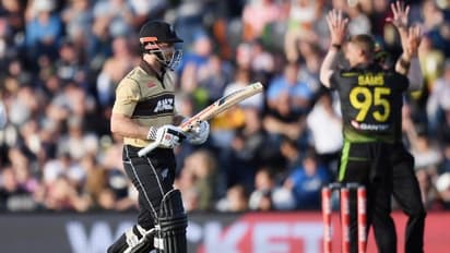 ഡാനിയേല് സാംസ് ഓസീസിനായി രണ്ട് വിക്കറ്റ് വീഴ്ത്തി. മാര്ട്ടിന് ഗപ്റ്റില് (0), ടിം സീഫെര്ട്ട് (1), ക്യാപ്റ്റന് കെയ്ന് വില്യംസണ് (12) എന്നിവരുടെ വിക്കറ്റുകളാണ് കിവീസിന് നഷ്ടമായത്. ഗപ്റ്റിലിനെ ആദ്യ ഓവറിലെ മൂന്നാം പന്തില് തന്നെ സാംസ് പുറത്താക്കി.