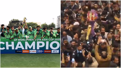 കിരീടവുമായി നാട്ടിലേക്ക് മടങ്ങിയ പാകിസ്ഥാന് അണ്ടര് 19 ക്രിക്കറ്റ് ടീമിനെ സ്വീകരിക്കാന് തിങ്കളാഴ്ച പുലര്ച്ചെ ആയിരക്കണക്കിന് ആരാധകര് ഇസ്ലാമാബാദില് എത്തി. യുവ ക്രിക്കറ്റ് താരങ്ങള്ക്ക് ഇസ്ലാമാബാദ് അന്താരാഷ്ട്ര വിമാനത്താവളത്തില് വീരോചിതമായ സ്വീകരണം നല്കി. ടീമിന്റെ വിമാനം ഇറങ്ങുന്നതിന് വളരെ മുമ്പുതന്നെ വിമാനത്താവള ടെര്മിനലിന് പുറത്ത് ആരാധകര് തടിച്ചുകൂടി. ടീമിന്റെ നേട്ടത്തെയും ഇന്ത്യയ്ക്കെതിരായ ചരിത്ര വിജയത്തെയും ആഘോഷിക്കുന്ന കാര്ഡുകള് പലരും കയ്യിലേന്തിയിരുന്നു. ഏതാണ്ട് ലോകകപ്പ് നേടിയത് പോലെ ആയിരുന്നു ആരാധകരുടെ ആഘോഷം. വീഡിയോ ദൃശ്യങ്ങള്...