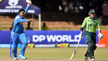 ബുലവായോ: അണ്ടര് 19 ലോകകപ്പില് പാകിസ്ഥാന് സെമിയിലെത്താതെ പുറത്താകുമെന്നുറപ്പാക്കി ഇന്ത്യ സെമിയിലേക്ക് ടിക്കറ്റെടുത്തു. ആദ്യം ബാറ്റ് ചെയ്ത് ഇന്ത്യ ഉയര്ത്തിയ 253 റണ്സ് വിജയലക്ഷ്യം 33.3 ഓവറില് മറികടന്നാല് മാത്രമെ പാകിസ്ഥാന് നെറ്റ് റണ്റേറ്റില് ഇന്ത്യയെ മറികടന്ന് സെമിയിലെത്താനാവുമായിരുന്നുള്ളു. എന്നാല് 33.3 ഓവറില് പാകിസ്ഥാന് 4 വിക്കറ്റ് നഷ്ടത്തില് 167 റണ്സിലെത്താനെ കഴിഞ്ഞുള്ളു. വെടിക്കെട്ട് ബാറ്ററായ സമീര് മിന്ഹാസിനെ(9) തുടക്കത്തിലെ പുറത്താക്കിയ ഹെനില് പട്ടേലാണ് ഇന്ത്യക്ക് മുന്തൂക്കം നല്കിയത്. പിന്നാലെ ഹംസ സഹൂറും ഉസ്മാന് ഖാനും ചേര്ന്ന് പാകിസ്ഥാനെ 17 ഓവറില് 88 റണ്സിലെത്തിച്ചെങ്കിലും ഇന്ത്യൻ ബൗളര്മാര് വരിഞ്ഞുമുറുകിയതോടെ തകര്ത്തടിക്കാനാവാതെ കുഴങ്ങി.