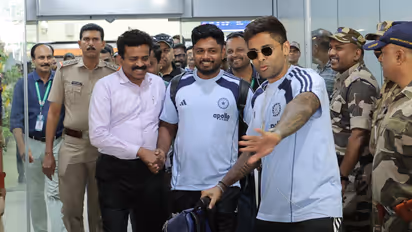 തിരുവനന്തപുരം: ഹോം ഗ്രൗണ്ടില് ആദ്യ മത്സരം കളിക്കാനായി തിരുവനന്തപുരത്ത് എത്തിയ മലയാളി താരം സഞ്ജു സാംസണെ ട്രോളി ക്യാപ്റ്റൻ സൂര്യകുമാര് യാദവ്. തിരുവനന്തപുരം വിമാനത്താവളത്തിൽ വന്നിറങ്ങിയ ടീം അംഗങ്ങൾക്കിടയിലൂടെ സഞ്ജു പുറത്തേക്ക് നടക്കുമ്പോഴായിരുന്നു സൂര്യയുടെ തമാശ. സഞ്ജുവിന് മുന്നിലായി നടന്ന സൂര്യകുമാർ, വഴി മാറിക്കൊടുക്കൂ, ചേട്ടനെ ശല്യം ചെയ്യരുത് എന്ന് തമാശരൂപേണ വിളിച്ചു പറയുകയായിരുന്നു. സൂര്യകുമാറിന്റെ തമാശകേട്ട് ചിരിയടക്കാൻ കഴിയാതെ സഞ്ജു പിന്നാലെ നടക്കുന്നത് വീഡിയോയിൽ കാണാം.