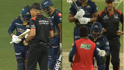 ചണ്ഡീഗഢ്: ഗുജറാത്ത് ടൈറ്റൻസും പഞ്ചാബ് കിങ്സും തമ്മിലുള്ള പോരാട്ടത്തിനിടെ ഗ്രൗണ്ടില് നാടകീയ രംഗങ്ങൾ. ഗുജറാത്ത് ഓൾറൗണ്ടർ രാഹുൽ തെവാത്തിയ നിയമവിരുദ്ധമായ ബാറ്റുമായി ക്രീസിലെത്തിയതാണ് വിവാദത്തിന് കാരണമായത്. സംശയം തോന്നി തെവാത്തിയയുടെ ബാറ്റ് പരിശോധിച്ച ഓൺ-ഫീൽഡ് അമ്പയർമാർ ഉടൻ തന്നെ ഇടപെടുകയും തെവാത്തിയയോട് ബാറ്റ് മാറ്റാൻ ആവശ്യപ്പെടുകയും ചെയ്തു.