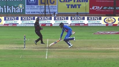 ഫീല്ഡ് അംപയറുടെ തീരുമാനം ചോദ്യചിഹ്നമായ സംഭവമിങ്ങനെ. കീമോ പോള് എറിഞ്ഞ 48-ാം ഓവറില് സിംഗിളിന് ശ്രമിക്കുകയായിരുന്നു ജഡേജ. വിന്ഡീസ് ഫീല്ഡറുടെ ത്രോയില് വിക്കറ്റ് ഇളകിയെങ്കിലും ജഡേജ ക്രീസിലെത്തി എന്നുറപ്പിച്ച് അംപയര് നോട്ടൗട്ട് വിളിച്ചു. വിന്ഡീസ് താരങ്ങള് അപ്പീല് ചെയ്തുമില്ല. എന്നാല് ടി വി റിപ്ലേകളില് സംശയം തോന്നിയതോടെ വിന്ഡീസ് താരങ്ങള് അപ്പീല് ചെയ്തു. ഇതോടെ തീരുമാനം മൂന്നാം അംപയര്ക്ക് വിടുകയായിരുന്നു അംപയര്.