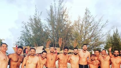 ജമൈക്ക: ഇന്ത്യ-വെസ്റ്റ് ഇന്ഡീസ് ടെസ്റ്റ് പരമ്പരക്ക് നാളെ തുടക്കമാകുകയാണ്. ടെസ്റ്റ് പരമ്പരക്ക് മുന്നോടിയായി കളിക്കാര്ക്കൊപ്പം നീന്തല്ക്കുളത്തില് നില്ക്കുന്നതിന്റെ ചിത്രം ഇന്ത്യന് നായകന് വിരാട് കോലി ഇന്ന് ഇന്സ്റ്റഗ്രാമില് പോസ്റ്റ് ചെയ്തിരുന്നു. സിക്സ് പായ്ക്കുമായി നടുവില് നില്ക്കുന്ന ക്യാപ്റ്റന് വിരാട് കോലിക്കൊപ്പം കട്ടക്ക് നില്ക്കുന്നതാണ് പേസ് ബൗളര് ജസ്പ്രീത് ബുമ്രയുടെ ശരീരവും.