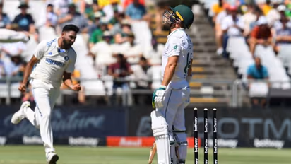 98 റണ്സ് കടവുമായി രണ്ടാം ഇന്നിംഗ്സ് തുടങ്ങിയ ദക്ഷിണാഫ്രിക്കക്ക് 62 റണ്സെടുക്കുന്നതിനിടെ മൂന്ന് വിക്കറ്റുകള് നഷ്ടമായിട്ടുണ്ട്. ഇരു ടീമിലുമായി കേശവ് മഹാരാജും രവീന്ദ്ര ജഡേജയും ഉണ്ടെങ്കിലും രണ്ടുപേരും ആദ്യ ഇന്നിംഗ്സില് ഒറ്റ പന്തുപോലും എറിഞ്ഞില്ല. വീണ 23 വിക്കറ്റുകളും സ്വന്തമാക്കിയതാകട്ടെ പേസര്മാരുമാണ്.