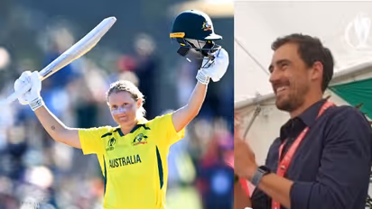 ഓസ്ട്രേലിയ-ഇംഗ്ലണ്ട് കലാശപ്പോര് നേരില് കാണാന് ഓസീസ് പേസര് കൂടിയായ മിച്ചല് സ്റ്റാര്ക്ക് ഗാലറിയിലെത്തിയിരുന്നു. 100 തികച്ച ശേഷം ഹെല്മറ്റൂരി അലീസ ഹീലി ബാറ്റുയര്ത്തിക്കാട്ടിയപ്പോള് എഴുന്നേറ്റുനിന്ന് അത്യാഹ്ളാദവാനായി കയ്യടിച്ച് അഭിനന്ദിക്കുകയായിരുന്നു ഭര്ത്താവ് മിച്ചല് സ്റ്റാര്ക്ക്.