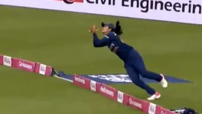 നേരിട്ട 27 പന്തില് നാല് ഫോറും രണ്ട് സിക്സും സഹിതം 43 റണ്സുമായി തകര്ത്ത് മുന്നേറുകയായിരുന്നു എമി ജോണ്സ്. ഇംഗ്ലണ്ട് ഇന്നിംഗ്സില് ശിഖ പാണ്ഡെ എറിഞ്ഞ 19-ാം ഓവറിലെ അഞ്ചാം പന്തില് സിക്സറിന് എമി ശ്രമിച്ചു. എന്നാല് ലോംഗ് ഓഫില് ഫീല്ഡ് ചെയ്തിരുന്ന ഹര്ലീന് ഡിയോള് ഉയര്ന്നുചാടി പന്ത് കൈപ്പിടിയിലൊതുക്കി. പക്ഷേ ഹര്ലീന്റെ കാലുകള് ബൗണ്ടറിയില് തട്ടുമെന്ന് തോന്നിച്ചു. ഏവരെയും അമ്പരപ്പിച്ച് പന്ത് വായുവിലേക്കെറിഞ്ഞ് മെയ്വഴക്കത്തോടെ ബൗണ്ടറിക്ക് പുറത്തേക്ക് ചാടിയ താരം പിന്നാലെ ബൗണ്ടറിക്കുള്ളില് തിരിച്ചെത്തി സാഹസികമായി ക്യാച്ച് പൂര്ത്തിയാക്കുകയായിരുന്നു.