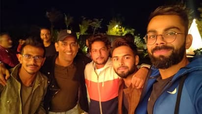 വിരുന്നിനിടെയുള്ള ഫോട്ടോകള് ഇന്ത്യന് ക്യാപ്റ്റന് വിരാട് കോലി ഇന്സ്റ്റഗ്രാം, ട്വിറ്റര് അക്കൗണ്ടുകളില് പങ്കുവെക്കുകയും ചെയ്തു. ഋഷഭ് പന്ത്, കുല്ദീപ് യാദവ്, എം.എസ് ധോണി, യൂസ്വേന്ദ്ര ചാഹല് എന്നിവര്ക്കൊപ്പമുള്ള ചിത്രമാണ് ധോണി പങ്കുവച്ചത്. ഫോട്ടോ ക്യാപ്ഷനില് കോലി ധോണിക്ക് നന്ദി പറയുന്നുമുണ്ട്.