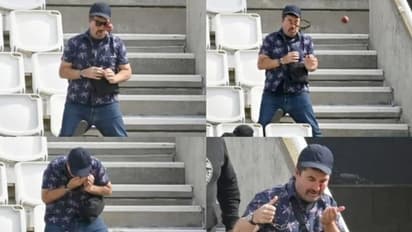 ബാറ്റിംഗിനിടെ ഷമിക്കെതിരെയും ജഡേജക്കെതിരെയും സൗത്തി സിക്സ് നേടുകയും ചെയ്തു. ഇതിൽ ജഡേജക്കെതിരെ സൗത്തി പായിച്ച പടുകൂറ്റൻ സിക്സ് ചെന്ന് പതിച്ചത് സ്ക്വയർ ലെഗ് ഗ്യാലറിയിൽ ഒറ്റക്കിരുന്ന് കളി കാണുകയായിരുന്ന ആരാധകന്റെ മുഖത്തായിരുന്നു. കണ്ണിന് താഴെ പന്ത് കൊണ്ട ആരാധകന് മുറിവേൽക്കുകയും ചെയ്തു. മുഖത്തു നിന്ന് ചോരയൊലിക്കുന്ന ആരാധകന്റെ ദൃശ്യങ്ങളും കാണാമായിരുന്നു.