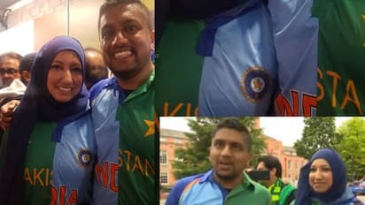 ഇന്ത്യയുടെയും പാക്കിസ്ഥാന്റെയും ജേഴ്സികള് പകുതിവീതം ധരിച്ചെത്തിയവരായിരുന്നു ഇരുവരും. ഭര്ത്താവ് പാക്കിസ്ഥാനിയും ഭാര്യം ഇന്ത്യക്കാരിയും ആണെന്നതിനാല് ഇരുരാജ്യങ്ങളുടെയും ജേഴ്സികള് പകുതി വീതമുള്ള വസ്ത്രം ധരിച്ചാണ് ഇരുവരും ഗ്യാലറിയിലെത്തിയത്. മത്സരത്തില് ആര് ജയിക്കുന്നു എന്നത് പ്രസക്തമല്ലെന്നും മികച്ച പ്രകടനം ആരാണോ പുറത്തെടുക്കുന്നത് അവര് ജയിക്കട്ടെയെന്നും ഇരുവരും പറഞ്ഞു.