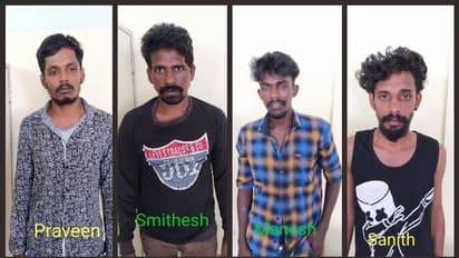 ആലപ്പുഴ ചേർത്തല അരൂക്കുറ്റി വടുതല ജെട്ടി പോസ്റ്റ് ജിത്തു പറമ്പത്ത് വീട്ടിൽ പ്രകാശൻ മകൻ മനേഷ് (23), പൂണിത്തുറ മരട് അയിനി അമ്പലത്തിനു സമീപം കച്ചേരിപ്പറമ്പ് വീട്ടിൽ സന്തോഷ് മകൻ പ്രവീൺ കുമാർ (27), പനങ്ങാട് എംഎൽഎ റോഡ് കാമോത്ത് സ്കൂളിനു സമീപം പുനേത്തറത്തിട്ട വീട്ടിൽ പ്രേമൻ മകൻ സനിത് @ ജിത്തു(27), പനങ്ങാട് ചാത്തമ്മ പനമ്പുകാട് വീട്ടിൽ പുരുഷോത്തമൻ മകൻ സ്മിതേഷ്@ കുട്ടാച്ചി(28) എന്നിവരെയാണ് എറണാകുളം സെൻട്രൽ പോലീസ് അറസ്റ്റ് ചെയ്തത്.